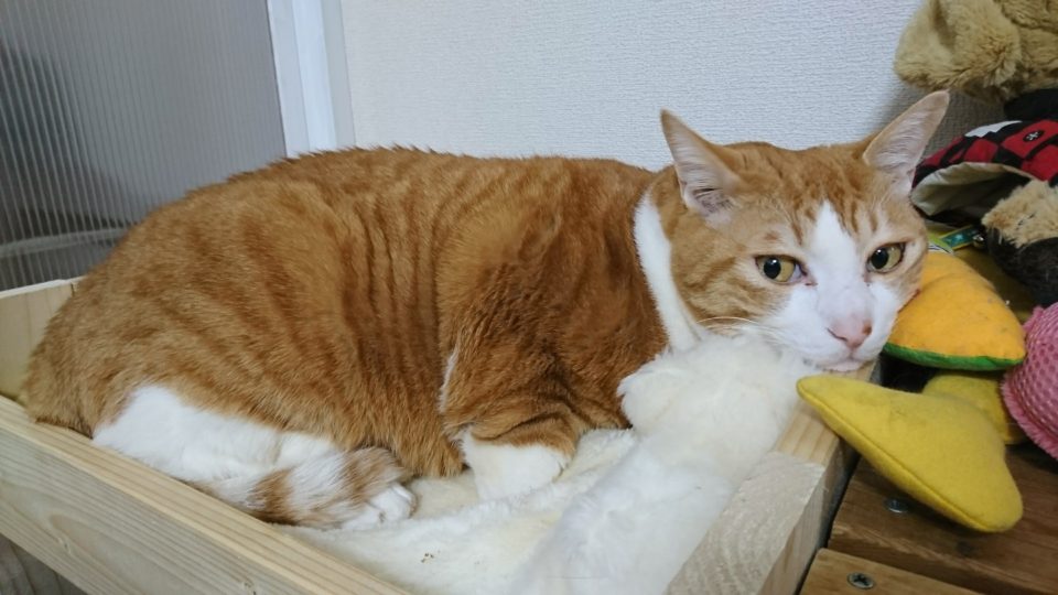 たまに枕をお尻に敷いている時もあります。